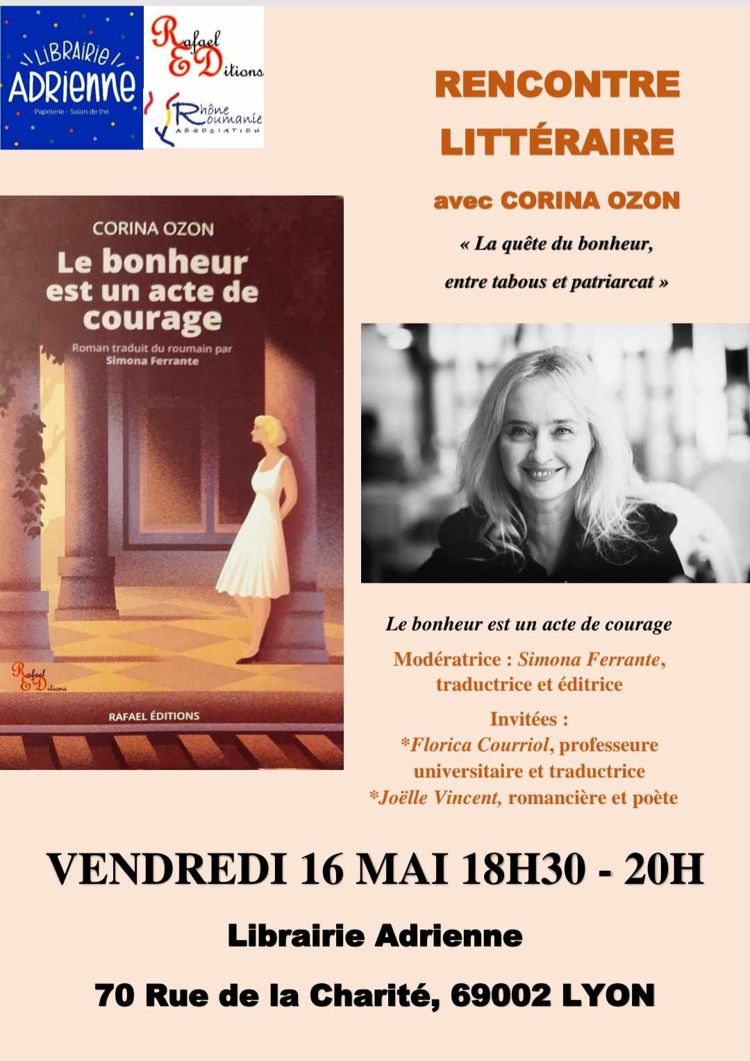 avec la participation de Florica Courriol, traductrice, et Joëlle Vincent, écrivaine, rencontre organisée par Rafael Editions et l’Association Rhône-Roumanie